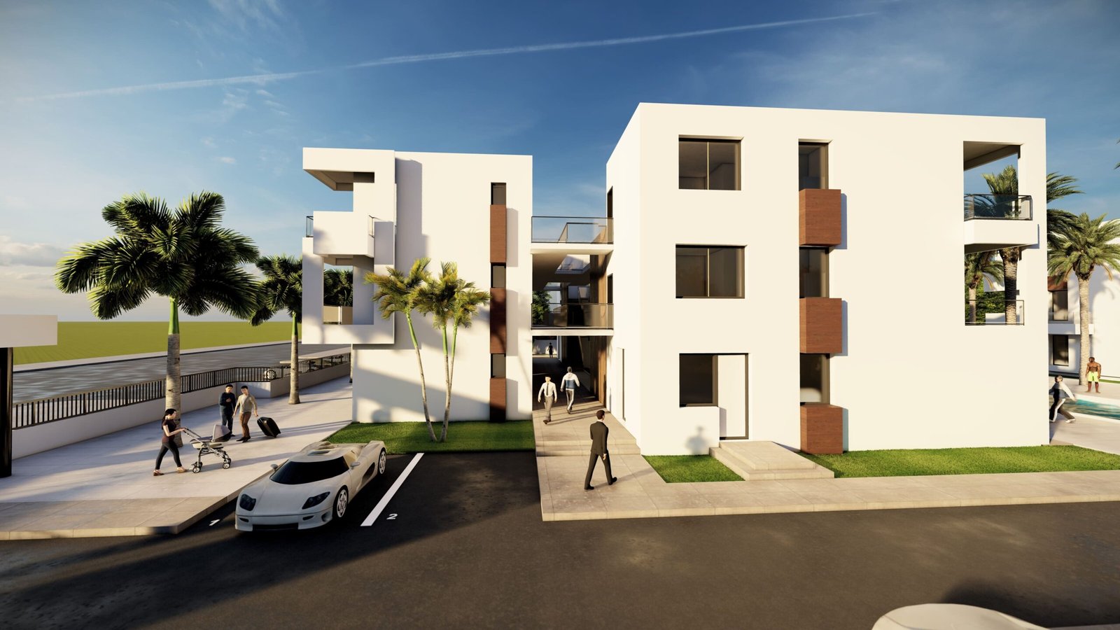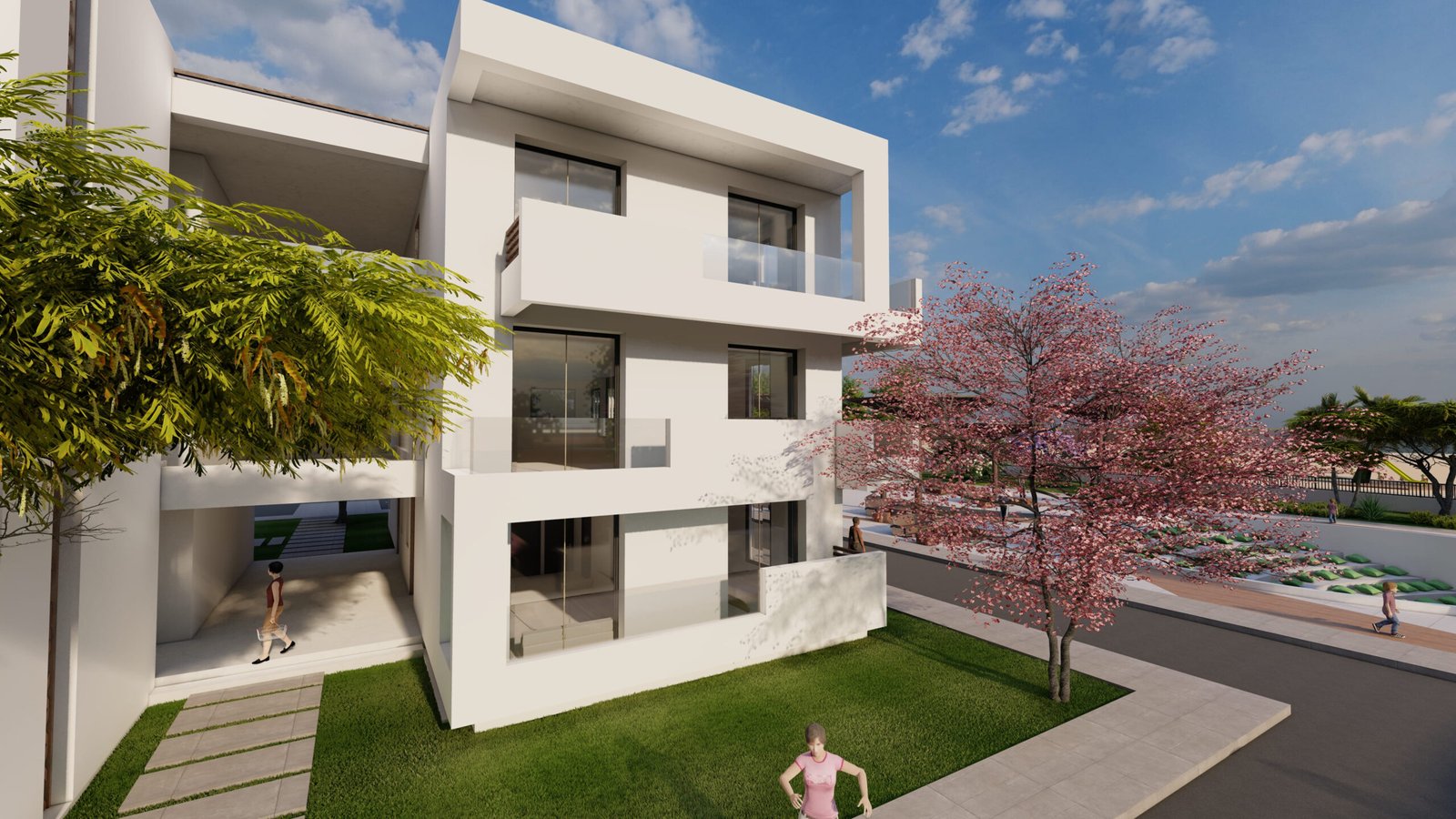 The architectural language is defined by clean, refined lines and a sober yet elegant aesthetic, reflecting a modern and timeless design approach.